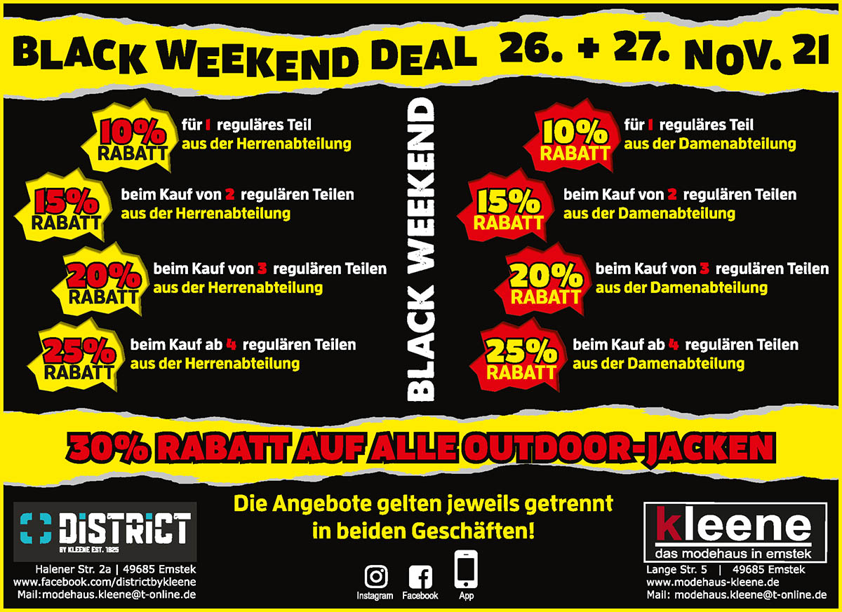 Unser Black-Weekend-Deal im Modehaus Kleene und im DISTRICT!