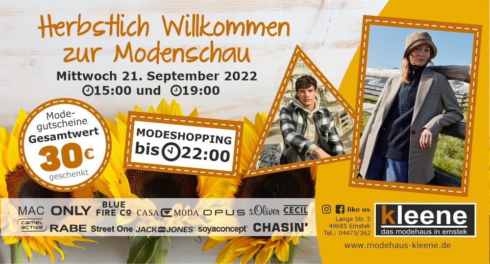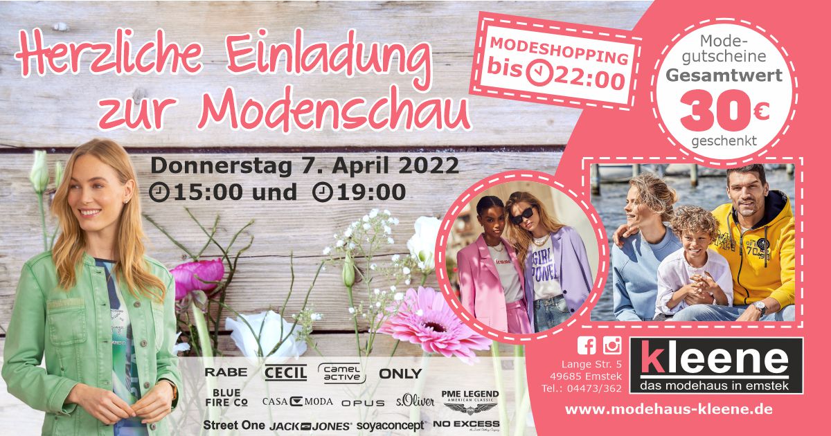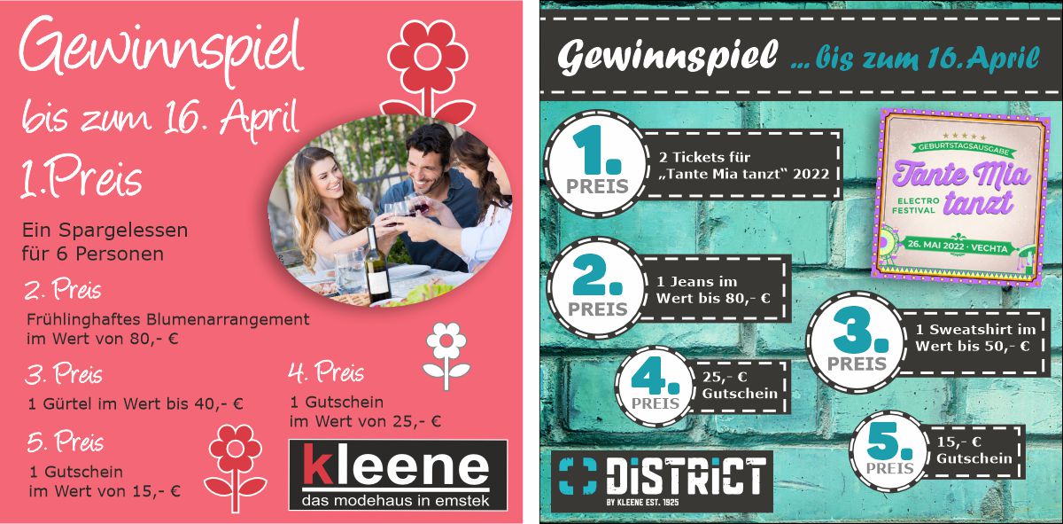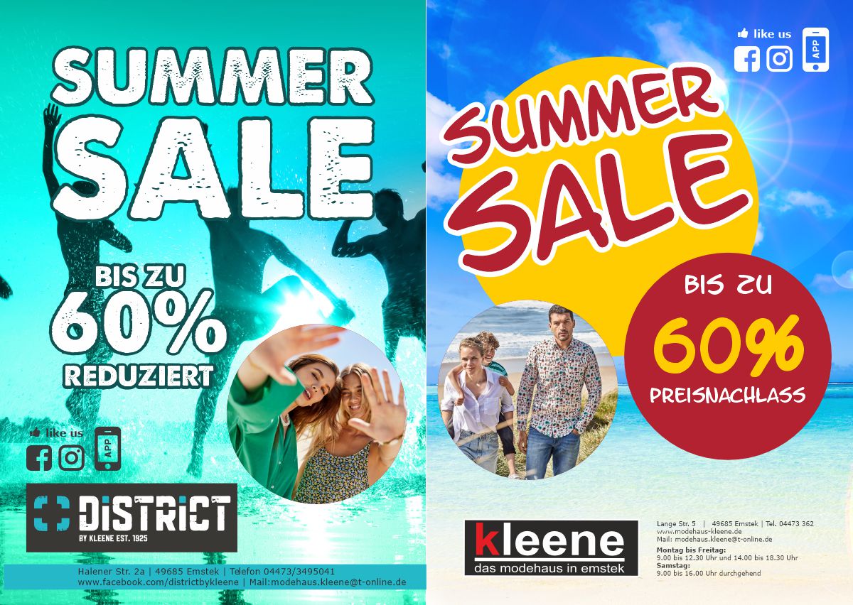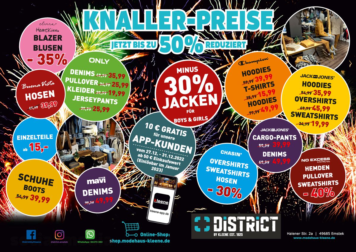 Am 3. & 4. Juni 2022 bekommst du bei uns, in Verbindung mit dem EMSTEKER FAMILIENSPARBUCH, 20% RABATT auf deinen gesamten regulären Einkauf im DISTRICT und im MODEHAUS KLEENE !
