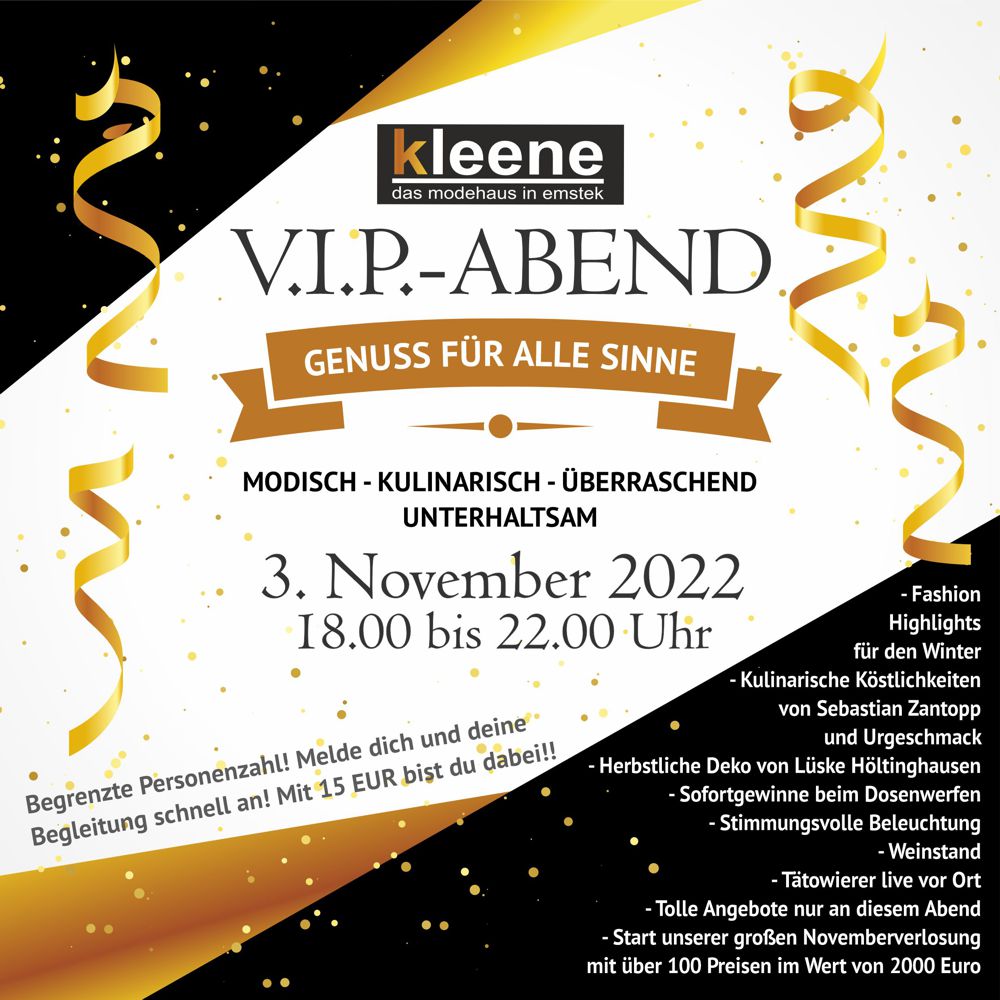 Zu einem V.I.P.- Abend der besonderen Art laden wir am 03. November um 18.00 Uhr ein.
